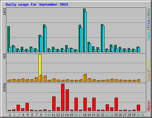| Day | Hits | Files | Pages | Visits | Sites | KBytes | ||||||