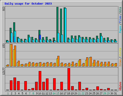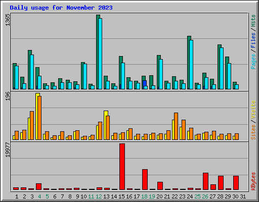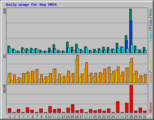 | Day | Hits | Files | Pages | Visits | Sites | KBytes | ||||||
