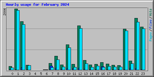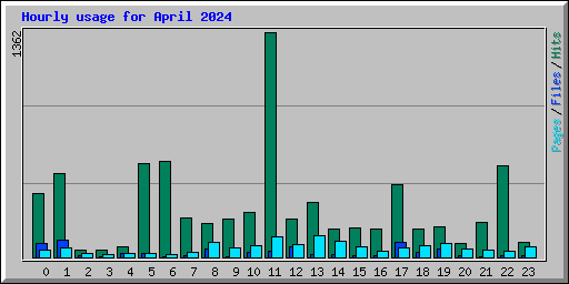 | Hour | Hits | Files | Pages | KBytes | ||||||||