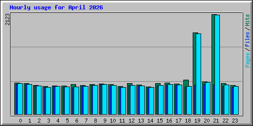 | Hour | Hits | Files | Pages | KBytes | ||||||||